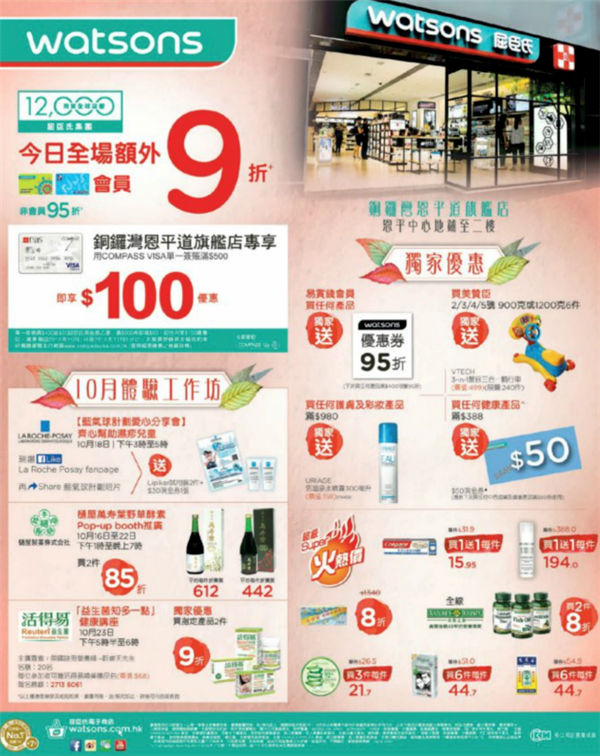 香港打折:屈臣氏最新店内购物优惠(至15年10月19日)