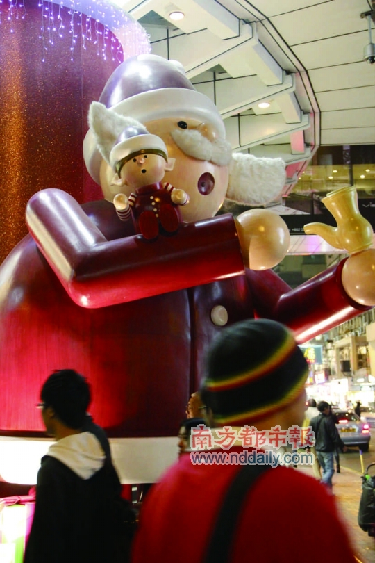 在弥敦道的美丽华商场门口,1米多的圣诞老人虽然不像其它灯饰一样庞大,也不特别闪烁耀眼,更没有标新立异的概念。质朴与回归成为灯饰的气场,但仍有很多人在这里合影,因为,这个圣诞老人会卖萌。不仅如此,在他的胳膊上还坐着一个小精灵,也一样萌眼看游人。