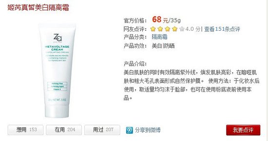 达人必败理由: 姬芮 的真皙美白系列的化装水和乳液,我用了觉得没有变白,可能是因为我皮肤本来就比较白,但能够保持皮肤不会黑。但我一直都有使用Za家的隔离霜,可以隔离紫外线,比较适合上班族。但有点儿略干,建议搭配保湿的底霜。颜色很自然,比较好推开,质地也..