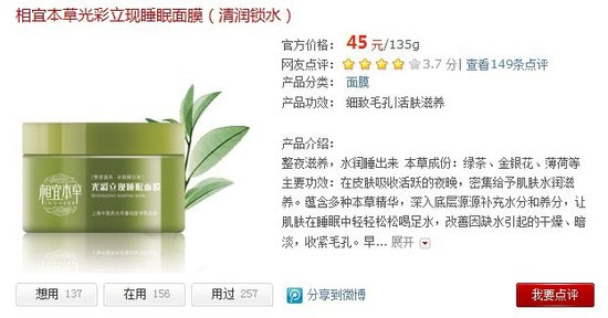必败单品NO.8:相宜本草光彩立现睡眠面膜
