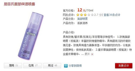 达人必败理由:在屈臣氏特价买的两瓶,早上上班赶时间,就喷喷代替擦化妆水。然后拍拍就吸收了,再用乳霜。我觉得还可以,对得起它的价格了
