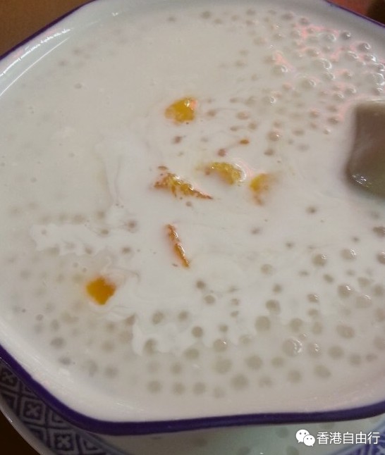 吃完赶紧走人,走到一家甜品店,看吃的人还挺多,心想还香港怎么不吃甜品呢?抱着试试的态度吃了,芝麻糊真不错,芒果西米露就这样,没什么经验的!最主要价格实在,两碗34港币!