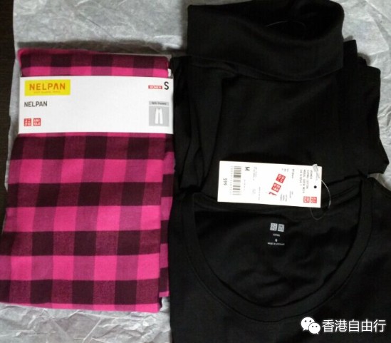 最后优衣库的没什么优惠,就是买了一条格仔睡裤和两件打底衫,一件高领,一件圆领中袖,两件一起129港币。。