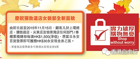 香港打折:永安百货秋冬传暖意购物优惠(至15年11月23日)