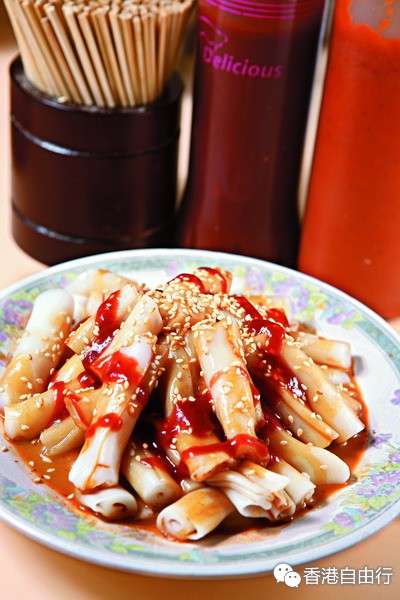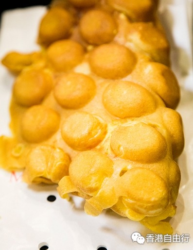 鸡蛋仔也是香港人的最爱,无论街边小店还是广场商铺,香港大部分快餐店都出售有即烤即食的鸡蛋仔。鸡蛋仔是香港地道的街头小吃,它是用鸡蛋、砂糖、面粉、淡奶等搅拌成糊,倒在两块特质的蜂巢状铁板中央,再放到火上烤制而成。新鲜出炉的鸡蛋仔色泽金黄,有蛋糕的香味,中间半空,外皮焦香,一口咬下酥脆弹牙。妈咪鸡蛋仔在原味的基础上大胆创新,开发出了抹茶红豆味、花生忌廉味、金莎朱古力味等等,受到香港青年一代的强烈追捧。