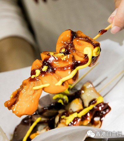 生肠、鱿鱼及火鸡各一大串,爽口鲜味,芥辣和甜酱都是吸引人一吃再吃的原因。