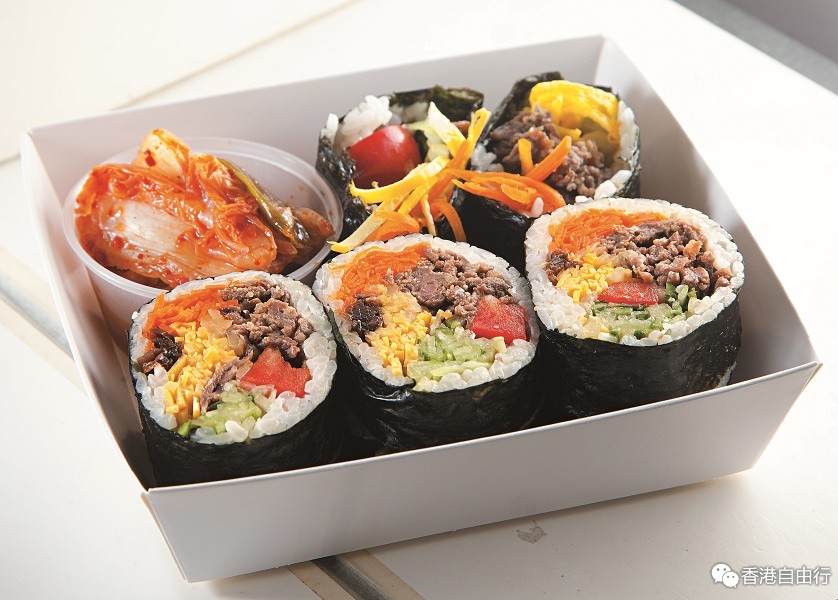 走进店内就像走进韩星天地,店内不停播韩国电视节目,除牛肉、猪肉、蔬菜及吞拿鱼 Kimbap外还有韩式炸鸡。