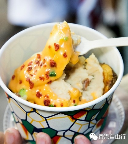 美味之处在于薯蓉鬆软香滑,但底层的薯皮烤得香脆,用彩色纸碗盛着,卖相精美。