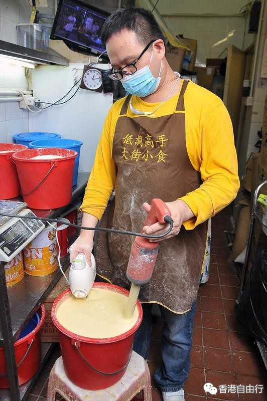 虽然制作鸡蛋仔的过程简单,但整个蛋浆其实都要用2个小时。Michael每朝早便制作约一日够用的份量,再放在室温保存,因为这是最好的温度,即使要放在雪柜里保存,拿出来时也要让蛋浆的温度升至室温的。