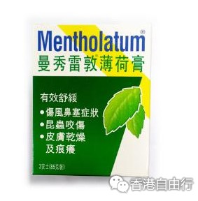 薄荷渗透作用,迅速舒缓伤风引起的鼻塞、头痛、胸闷、咳嗽及皮肤疼痛。