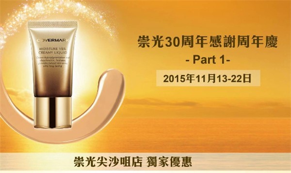香港打折:Laura Mercier、RMK、COVERMARK SOGO崇光30周年感谢周年庆购物优惠(至15年11月22日)