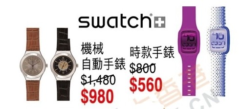 SWATCH 时尚手表 HK$560(原价:HK$800)
