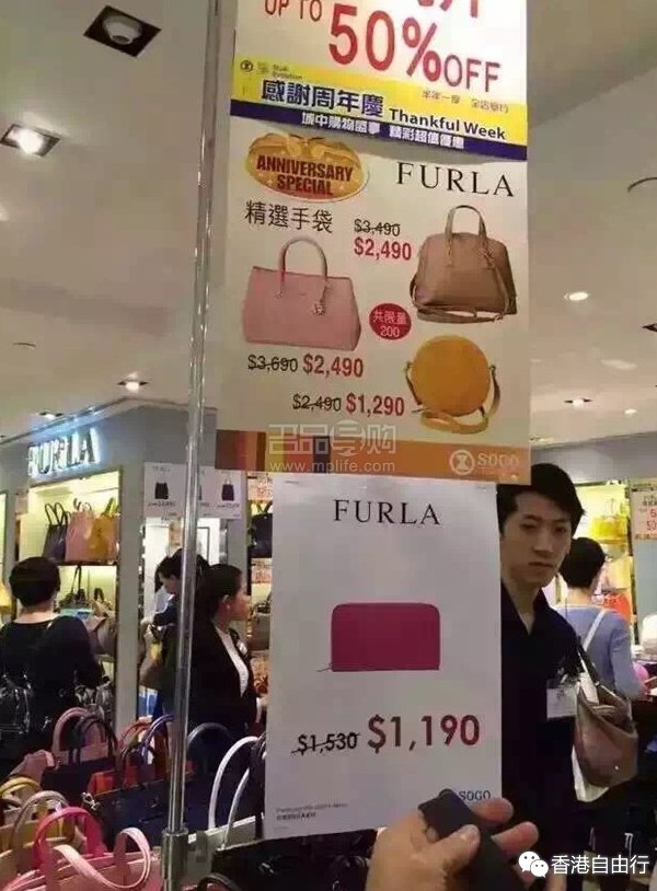 Furla原价2490港币的,四个颜色,折扣1290港币。