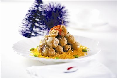 其招牌菜式榄菜玉珠、龙皇白玉卷是梁师傅极富创意的心血之作,美味健康,也是我曾多次大力推荐的美味,一定不能错过。而另一道万寿果牛肋肉,则是我此行的新发现。我本身是一个非常不喜欢吃木瓜的人,但是,这道菜中的木瓜却完全带出了木瓜的清甜,牛肉的香嫩,让一道看似肥腻的菜式,实则清爽无比。鸳鸯糯米饭则是梁师傅刚刚荣获金奖的新作,他说这是他来广东旅游、吃各种甜咸味糯米粽子时被激发出灵感制作而成的新式主食,上甜下咸,却配合得天衣无缝,其酥脆香软达至主食新高点。