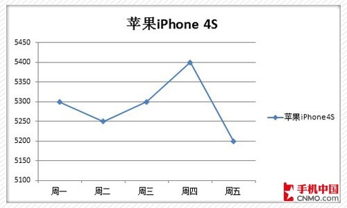 苹果iPhone 4S依然是市场关注的焦点机型,时尚而简约的外形设计以及无比流畅的操控体验让它有着极高的人气。就目前市售版本来看,港版无疑是最受欢迎的版本之一,下面就是港版iPhone 4S价格走势图。从图中我们看到,一周的走势不是很顺利,周四出现大幅度上扬,价格一度飙升至5400元,而截至本周末其售价已经降至5199元。