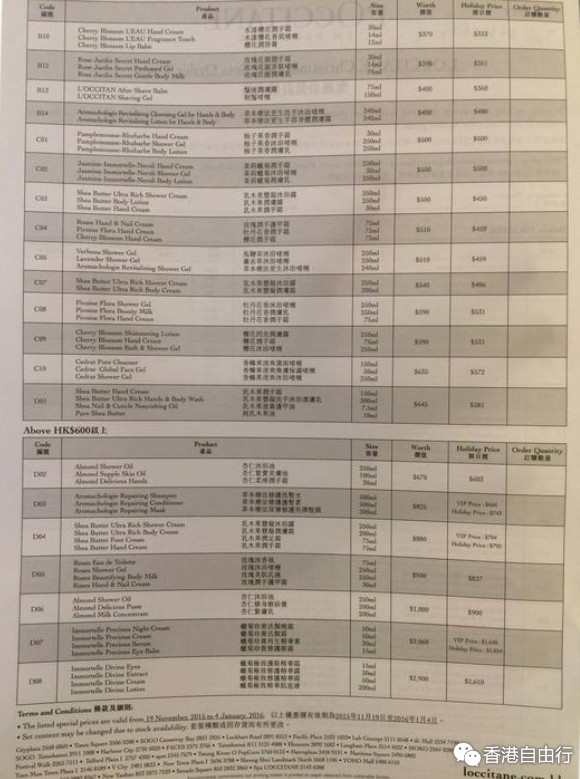 L'occitane欧舒丹,我就问销售拿了个详细报价单