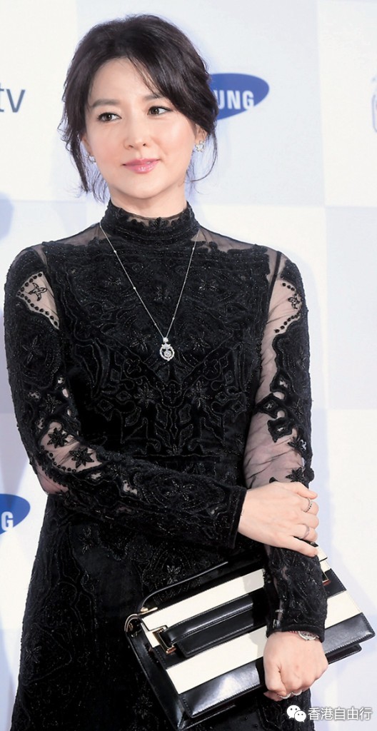 My Rockstud 手袋於早秋系列面世,延续至秋冬新季,以条子、金色马毛点缀,充满复古格调。李英爱挑选了My Rockstud黑白条子clutch,配衬全黑打扮。