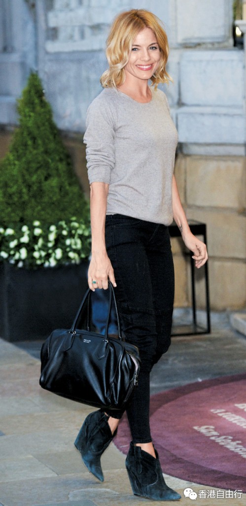 Prada 新季专攻层次感,Inside bag 以袋中袋概念打造,多层间隔为用家带来更多方便。英伦女星Sienna Miller平日爱用低调的黑色Inside bag。