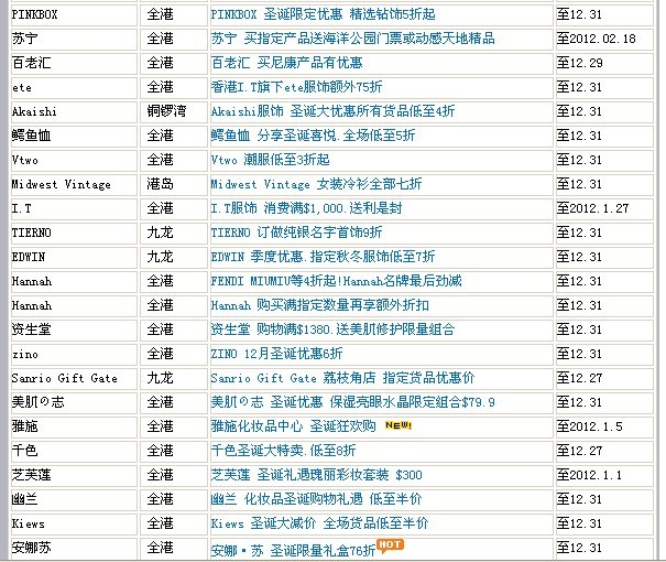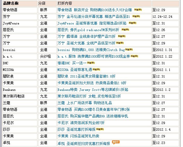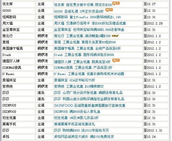 香港打折季圣诞元旦打折汇总