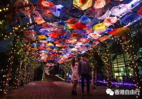 12月2日,模特在香港“璃光大道”上同玻璃艺术品合影。当日,香港新城市广场举行传媒预览,宣布于12月3日至2016年1月15日期间开放“璃光大道”。“璃光大道”是由来自美国和中国台湾、香港等地的玻璃艺术家携手筑起的全手工玻璃花园。新华社发(伍永健 摄)