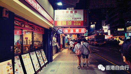 香港的酒店都是性价比不高,价格贵房间小,但是呢~~我对于我们定的这个酒店相当满意在于它的地理位置。对于香港其实完全没去过的人是没啥概念的,尤其是我这种,比较懒的。。。额,当时选这个酒店是因为朋友曾经住过红茶馆的酒店但不是油麻地这家,所以印象中觉得。。。红茶馆应该还行,加上油麻地感觉挺中心的地方,于是就果断定了。后来跟香港同学联系上才知道,红茶馆在他们眼中就是经济快捷酒店,跟国内的7天之类差不多。到油麻地从C口出来,往后面走看到鸡打街几个字再抬头往前面看,就可以看到红茶馆酒店的标示了。所以可以说是非常非常非常近,我感觉就2,3分钟就走到了吧。