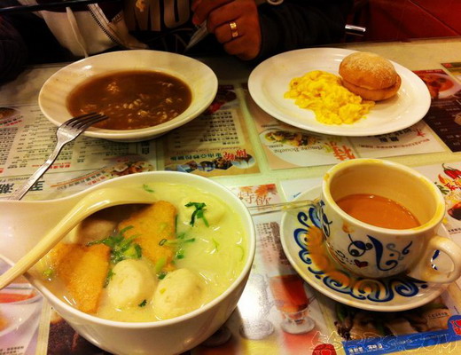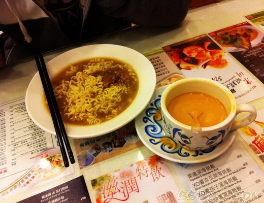 一早去铜锣湾SOGO边上吃了“翠华”,公仔面套餐、猪油包、奶茶、杏仁茶、鱼蛋,味道还是不错的,只不过服务员丧了点,跟被门掩了似的!推荐没去的朋友们去尝尝。我们点的沙嗲牛肉公仔面套餐,面就是方便面,但味道确实不错~~在翠华,我爱上了猪油包,确实好吃!!!
