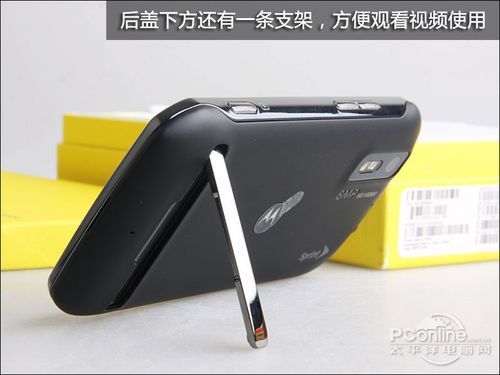 MB855采用了NVIDIA出品的Tegra2双核处理器,主频为1GHz,拥有1GB运行内存,配置达到了Android手机的主流水准。特别值得一提的是,手机在背面设计了一个折叠支架,方便用户在观看视频时起到“解放”双手。