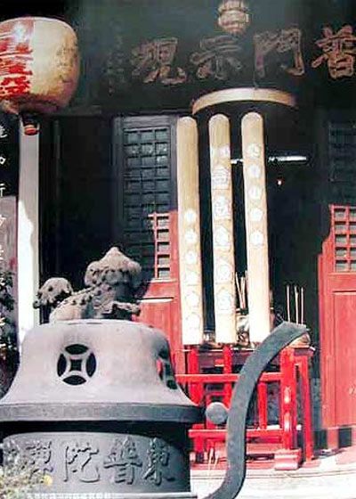 观音庙内的,正殿供奉观音,兼奉关帝、黄大仙、和齐天大圣;左面设有观音寝室龙床;右则建有如来殿,观音庙对下是大雄宝殿。
