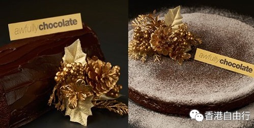 就算明明知道冬天容易长膘,但小编还是坚持以“衣服厚可以掩盖真相”的理由,忍不住以买礼物的名义跑去Awfully Chocolate品尝两款圣诞蛋糕:巧克力丝绒蛋糕和巧克力树干蛋糕。