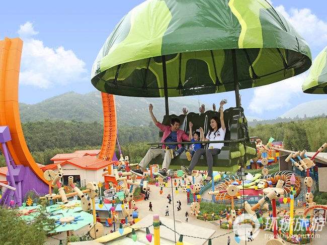 或者你也可以坐上“玩具兵团跳降伞”,感受高处的风景。