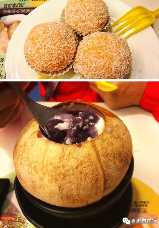 许留山的椰汁炖奶加紫薯小米 芒果糯米糍,糯米糍好好吃