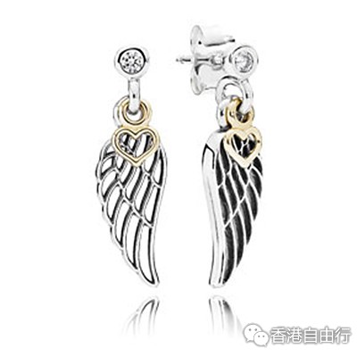 ANGEL WING SILVER EARRINGS WITH CLEAR CUBIC ZIRCONIA AND 14K HEARTS