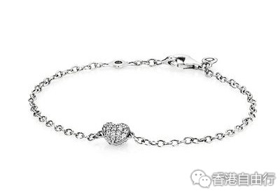 这款密镶心形手链流露精巧优雅之感。以纯银製成的细小环圈串连在一起,链节中央镶配小巧的密镶心形组件。