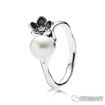 浪漫的PANDORA花卉纯银戒指,设计灵感来自皎洁月光下的柔丽花卉。手工製作的黑色珐琅花卉旁边缀以一颗素雅的淡水养殖珍珠,中央镶饰一枚立方氧化锆石,绝对是精彩之作!