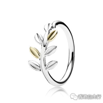 双色纯银和金戒指以月桂叶为造型,是和平和保护的象徵