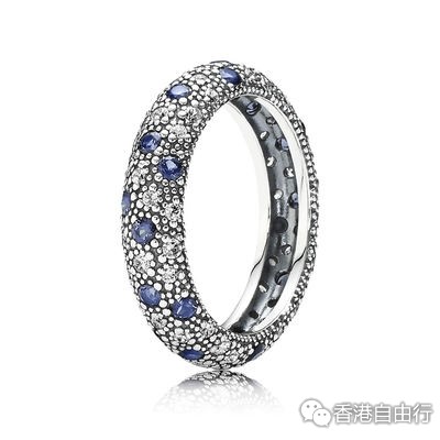 纯银戒指镶配明亮的立方氧化锆石和蓝色水晶,为您的造型注入流行的夜蓝色调