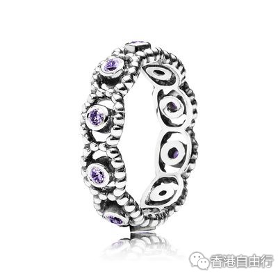 紫色立方氧化锆石,轻易成为迭戴戒指的焦点。每个环圈均围绕著细小的纯银圆珠,令此精巧戒指整体造型更加别緻。