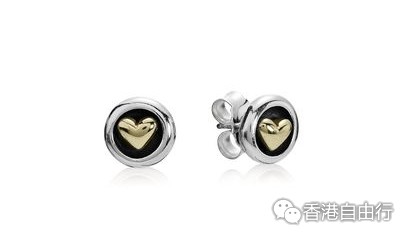 这对双色心形耳环教人爱不释手。耳环以纯银和14K金製成,中央镶配细小的心形细节。