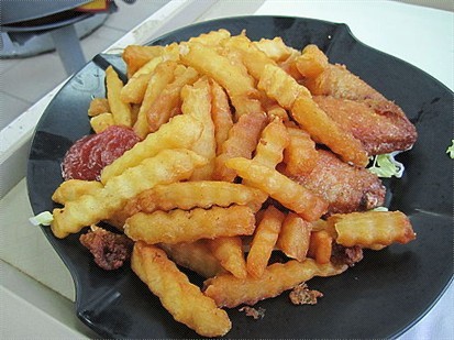 仲有鸡翼薯条,好like喱款薯条呀,粗薯条,仲要热辣辣,份量多,正呀,鸡翼比较细隻,不过味道唔错~!