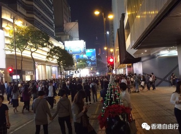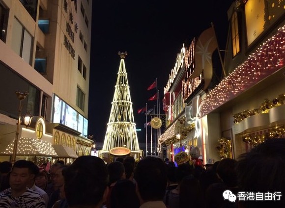 回到酒店休息了一会儿,当天是平安夜下楼去凑个热闹,尖沙嘴多条街道封路,满大街的人脑袋