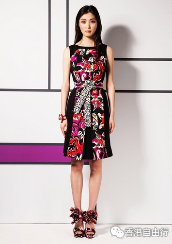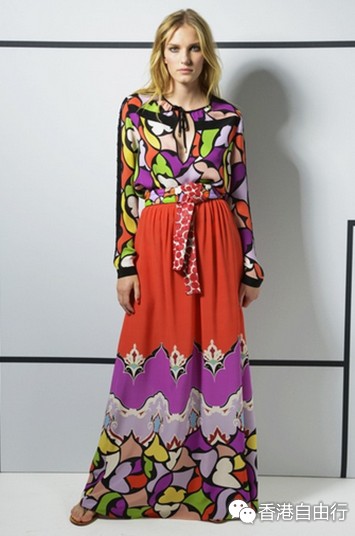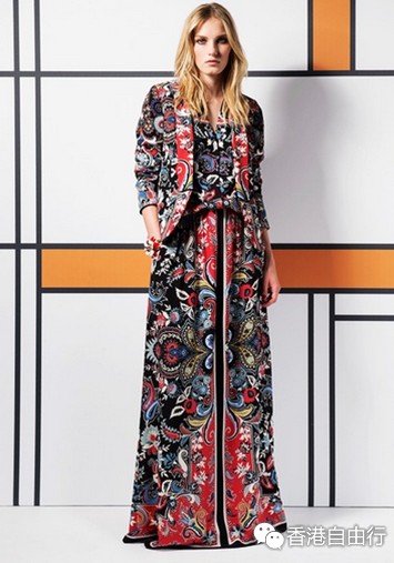 ETRO早春度假系列灵感发想于野兽派画家马蒂斯。野兽派画家热衷于运用鲜艳、浓重的色彩,以直率、粗放的笔法,创造强烈的画面效果,充分显示出追求情感表达的表现主义倾向。马蒂斯的画造型极其简炼,线条弯曲起伏,笔法轻松流畅,散发着儿童般的天真稚趣,萌发着生命的朝气。他的画,往往传达着某种欢快的情感,给人以视觉的享受。Veronica Etro将灿烂愉悦的心情注入本季的色彩中,使得佩斯里印花在本季有着更加自由不羁的表达,呈现着丰富细致的耀目效果。