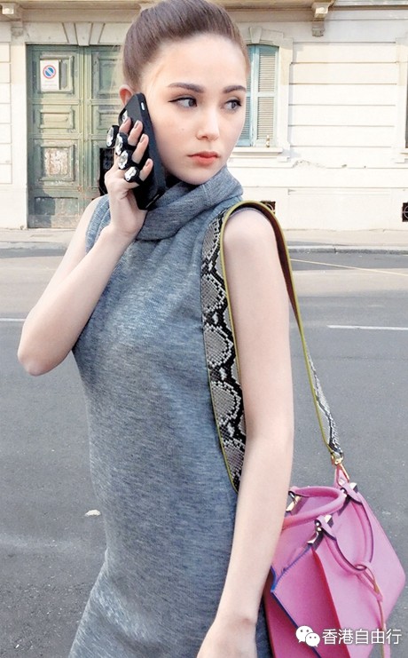 昆凌以粉红3 Jours配搭蛇皮背带,增添奢华感