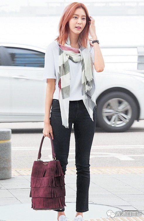 韩国女团After School成员U-IE选用麖皮流苏水桶袋