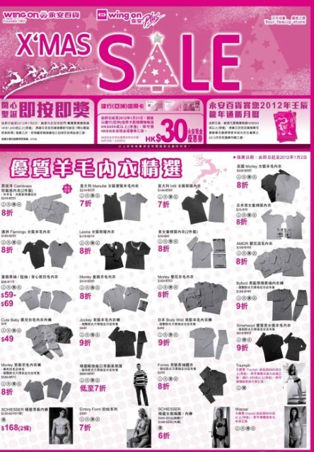 永安百货「优质羊毛内衣精选」 开始啦,由即日起到2012年1月2日,产品低至7折
