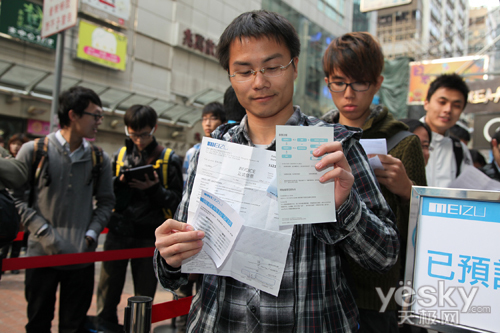 他就是魅族MX香港首发预定第一人了,随着他的购机成功,魅族MX正式落户香港~