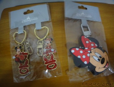 钥匙链 (一个是Mickey和Minnie有喜字的,我和老公一人一个。。。这个价格不记得啦, 我回头查查, 还有一个是Minnie小钱包, HKD68, 还有一个给MM啦,没有单独的照片啦,全家福上有,都是Mickey和Minnie的图像,也是HKD68)