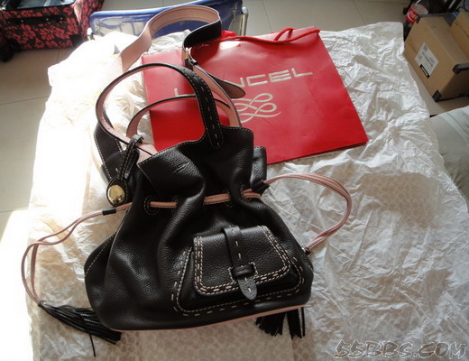 一直想买个Lancel的水桶包, 今年新款的正红色,真的好漂亮啊。。。但是刚买了Prada啊。。。就在打折区转悠啊转悠,就一眼看中了这个水桶包, 而且五折啊。。。又是荔枝皮, 拿着都不想放手啦, 旁边有两个MM,也关注起来。。。店员说就这一个啦,还是从香港那个店调来的,LG怕我又纠结,当即拍板说,我们要啦。。。哈哈, MM就找店员说想调货啊。。。店员好像说已经太少啦,是刚打折的款啊。。。哈哈, 好Lucky啊, 回来我就背上了,也觉得超值超值啊。。。很多MM都说好看呢。。。。