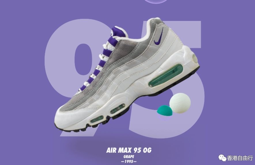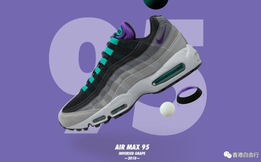 采用罕见倒置渐变色的 Air Max 95 “Grape” 对球鞋文化中的配色组合有着深远的影响,时不时就会作为怀旧复刻款再度推向市场。这款有着微妙细节设计的元年OG配色就如同可视气垫中祖母绿内衬一样,将成为永远的潮流引导者。
