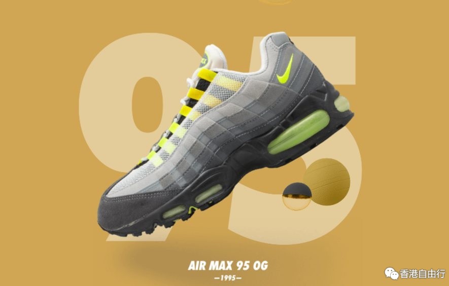 Sergio Lozano 设计的Air Max 95一经问世立即成为经典。这款鞋的整体设计灵感源自人体解剖学,前掌处独一无二的Nike Air可视缓震以及鞋款整体设计奠定了它的经典地位。但它并没有就此止步,独特的“萤光黄”配色方案在未来进一步巩固了它的地位。