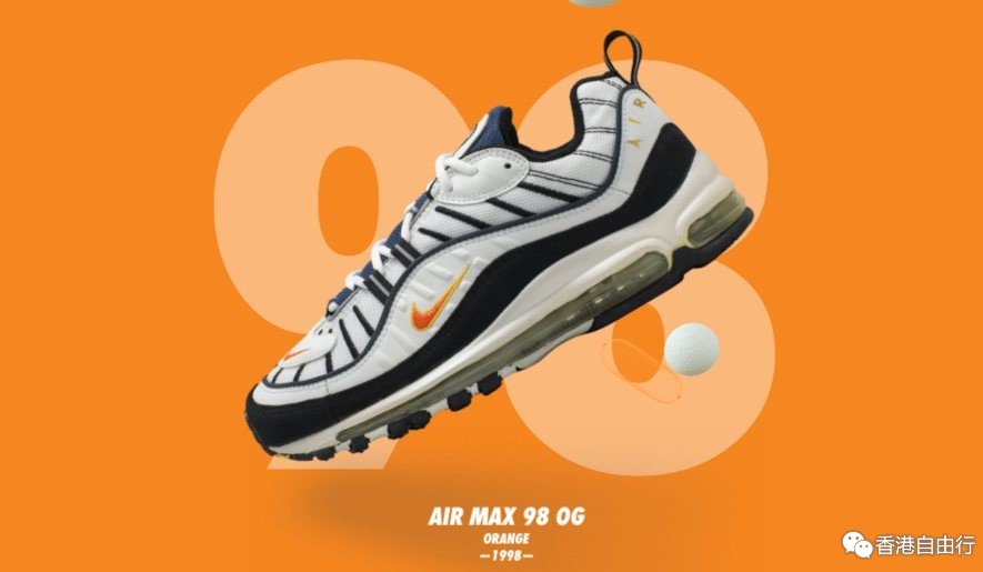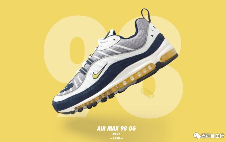 与前款的 Air Max 一样,Air Max 98 采用同样的全掌 Nike Air 缓震技术,并以独特的设计元素和简洁的配色受到了欢迎。除了率先推出的白色、黑色、和深橙色款之外,Air Max 98同时还发布了一直以来颇受赞誉的红、白、蓝配色。